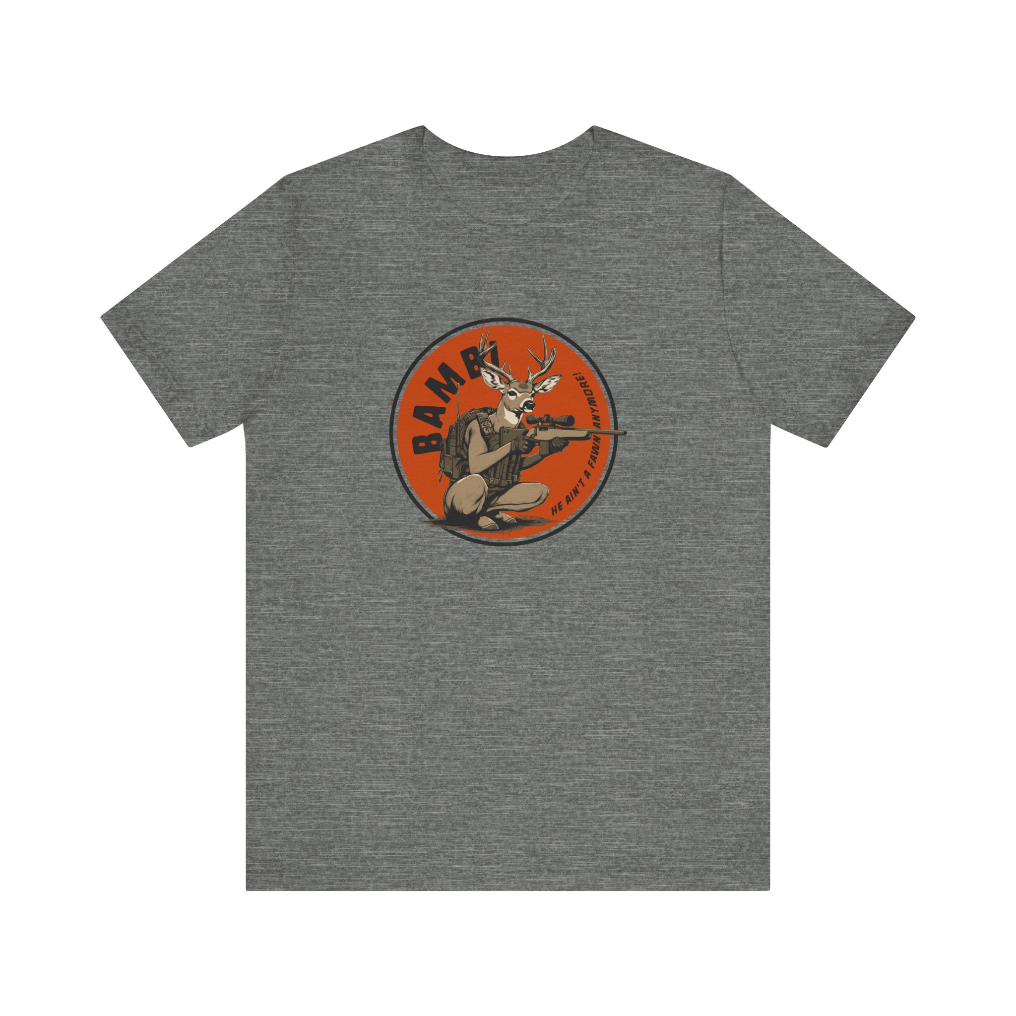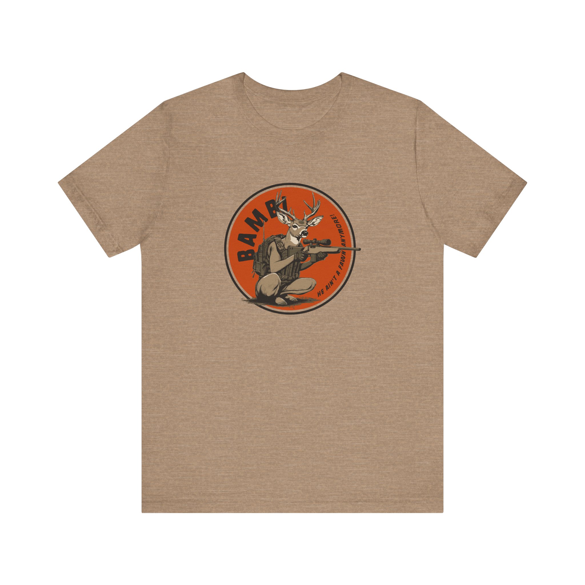 Looks like Bambi took “survival of the fittest” personally. This T-shirt features everyone’s favorite deer, all grown up and armed to the antlers. Turns out, watching your mom become venison changes a guy. Perfect for those who like their humor dark and their deer...vindictive.